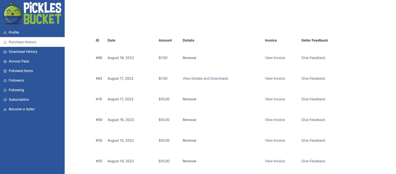 Once you register on PicklesBucket website, you have an access to a dashboard where you can control and manage your details, following, payment details & purchase history. Here we will have a quick look into your account and how to manage it. And there will be more articles on how to manage each part in your account.